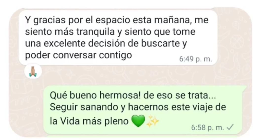💬 Creo en la responsabilidad emocional compartida. Yo entrego las herramientas, el tiempo y la guía; tú te comprometes con tu proceso siguiendo las recomendaciones. Si eso no se siente justo o útil para ti, puedes dar un paso atrás.